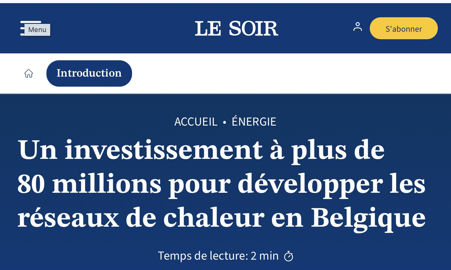Fév182026 Un coup d’accélérateur massif pour la transition énergétique en Belgique. https://www.lesoir.be/726975/article/2026-02-05/un-investissement-plus-de-80-millions-pour-developper-les-reseaux-de-chaleur-en Partager cet article Partager sur FacebookPartager sur Facebook Share on XPartager sur X Partager sur LinkedInPartager sur LinkedIn Partager sur WhatsAppPartager sur WhatsApp